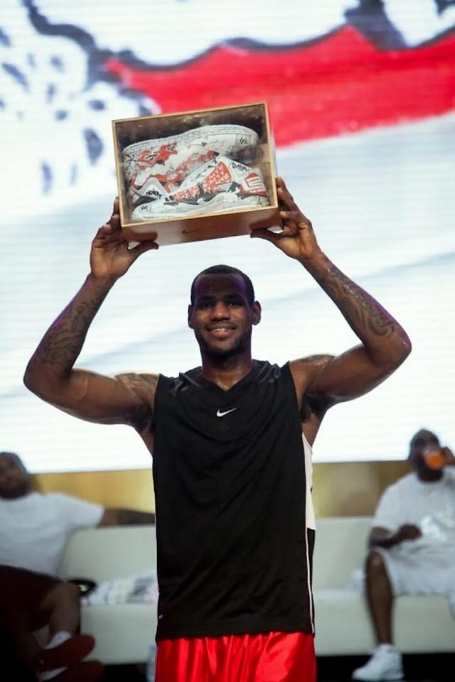 这一年,为庆祝詹姆斯的赛季表现,耐克特别为他打造了两款独一无二的Nike Air Max LeBron VII:由本土艺术家雷磊创作、以沈阳为灵感的“忠诚”配色,以及由本土艺术家Sic设计、以上海为灵感的“家庭”配色。